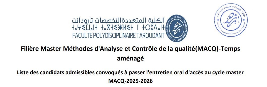 Liste des candidats présélectionnés à passer l'entretien oral Liste des candidats présélectionnés à passer l'entretien oral (Temps Aménagé) Date de l'entretien : Le Lundi 22 Décembre 2025 à partir de...