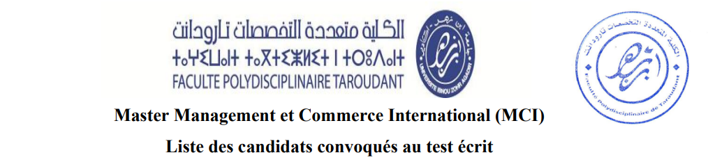 Liste des candidats convoqués au test écrit Liste des candidats convoqués au test écrit (Temps Aménagé) Date du test écrit :: Samedi 20 Décembre 2025 à...