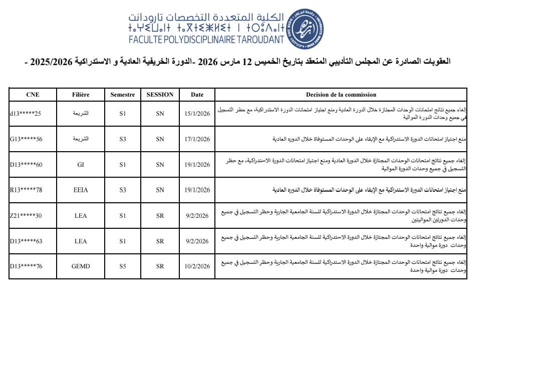 المجلس التأديبي الدورة الخريفية 2025/2026