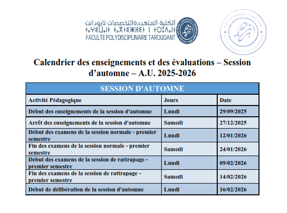 Calendrier des enseignements et des évaluations de la session d automne 2025-2026