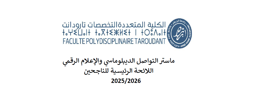 اللائحة الرئيسية للناجحين ماستر التواصل الدبلوماسي و الإعلام الرقمي 2025/2026