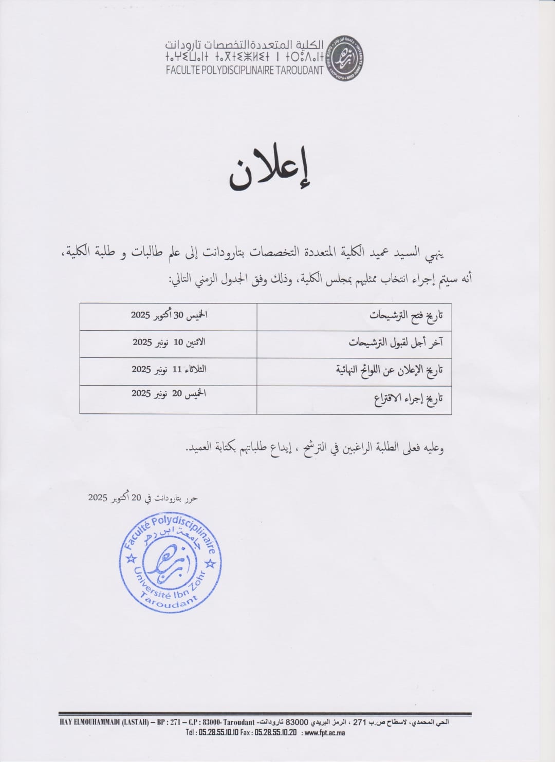 Licence Sciences et Ingénierie de l’Eau - 2025/2026 Consulter Liste principale des candidats admis à s'inscrire en 3ème année au titre de l'année universitaire 2025/2026 Date d'inscription: Le 20 et 21 octobre 2025...